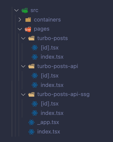 /src/pages/turbo-posts-apiand call it/src/pages/turbo-posts-api-ssg. In those files we will update to prefetch and prefill the store at build time. - In